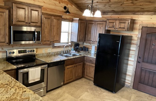 Brand New in 2023. Beautiful 3 Bedroom / 2 bath luxury cabin with Hot Tub is located in the prestigious gated community of Legacy Trails. Come and enjoy the privacy and seclusion this cabin offers, just a short 25 minutes north of Hochatown in the scenic Kiamichi Mountains. The fully furnished Kitchen has granite counter tops and is fully stocked with all the amenities of home! With 3 bedrooms and 2 baths, Villa Susan offers ample privacy and room for families or couples! The Utility room, offers a full size washer and dryer. On those chilly evenings, nestle up to the beautiful stone fireplace in the living room or choose to sit outside around the fire pit, taking in the stars and roasting smores. Firewood is provided! Plenty of seating for all on a large deck with lounge chairs to soak in the sun, read a book or just rest in nature's beauty. A charcoal park style grill for those who enjoy outdoor cooking is located just off the back porch and enjoy an outdoor lunch on a full size custom picnic table! Come soak in the private hot tub located on the fully covered back porch! Deer, squirrels, foxes and other wildlife are home to the area! Private access to the Mountain fork river is just minutes away where you can enjoy fishing, swimming and kayaking. Kayaks, paddles and life vest are available during season, and are subject to unavailability during inclimate weather, high or rising river levels and cold temperatures.