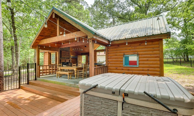 Hot Tub: Luxe Lake Livingston Cabin in Cape Royale | House in Coldspring