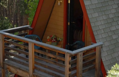 Unique and peaceful A-Frame above Evergreen. Rustic feel for those who want to be serene and peaceful, but still on the grid. The chalet features satellite high-speed internet* (see additional notes), a full-size fridge, and a gas fireplace. Upstairs features a double bed, private balcony, and a Queen Size bed too. Go hiking, read a book, relax in the Hot Tub, or take in old-town Evergreen just 15 mins away. With over 240 high reviews, this is the original. Why take a chance on the imitators?