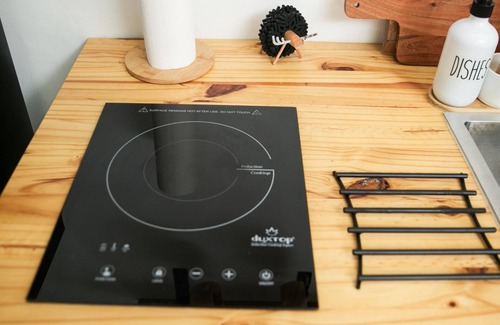 Find solace away from the daily grind in our beautiful sanctuary. Discover serenity in our charming tiny house with a petite patio and luxurious jacuzzi. Perfect for a cozy getaway, this retreat offers a blend of comfort and relaxation.