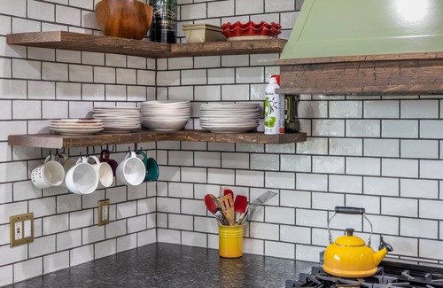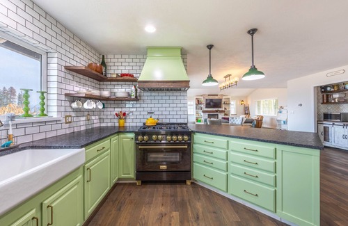 When it's time to dine, do so in modern style. The traveling chef in your group will be able to find ample inspiration in this remodeled kitchen that comes with Zline Professional Grade 6 burner stove and plenty of space to prepare meals.