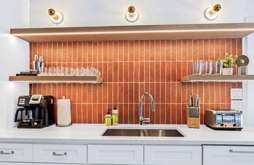 ‣ Generously equipped kitchen with a Keurig coffee maker, additional coffee pot, coffee, teas, and hot chocolate.