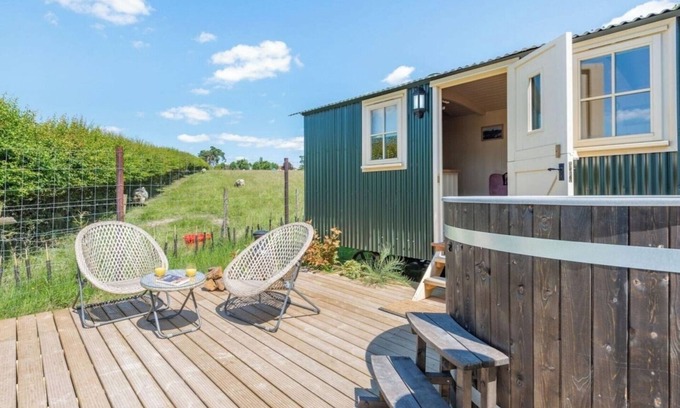 Otium Wine Estate's Hot Tub Retreat is an idyllic property set amongst 80 acres of vines, woodland, and fishing lakes. This is the perfect romantic retreat for those looking to escape to the country. Enjoy the wood burning hot tub and watch the sunset over the rolling countryside, with your own decked seating area to relax on. The property also comprises a comfortable double bed, full kitchen, a shower and toilet plus a wood burner for those cosy nights in.