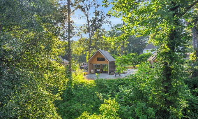 The cabin is part of a small riverside community made up of 16 unique stays. Each one is spaced out to offer a sense of privacy while still giving you the feeling of being part of something special. Guests have access to a shared washer and dryer on the property, making longer stays easy and convenient.