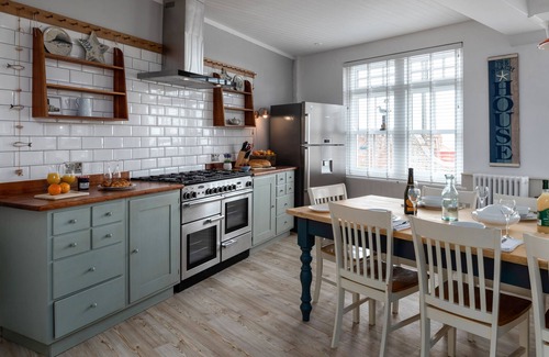 Perched on the cliff overlooking a beautiful golden beach our luxury self catering house is ideal for groups looking for a family holiday, memorable birthday weekends and cosy Christmas or New Year break with your nearest and dearest. Beach House has plenty of space to spread out, a massive open plan kitchen diner, the dining table seats 16. There is a beautiful cottage style garden with outside dining, a big sitting room with full Sky HD with Netflix. All the bedrooms have the comfiest beds, the whitest Egyptian cotton bedding and the fluffiest white towels possible. The large luxurious bathrooms mean no queue in the morning, one bathroom has a fab copper bath and power shower, the other has a jacuzzi bath and a further bathroom has a bath & shower. We have a fabulous 6 person hot tub and sauna room which is open for use all year round. There is off road parking near the house.