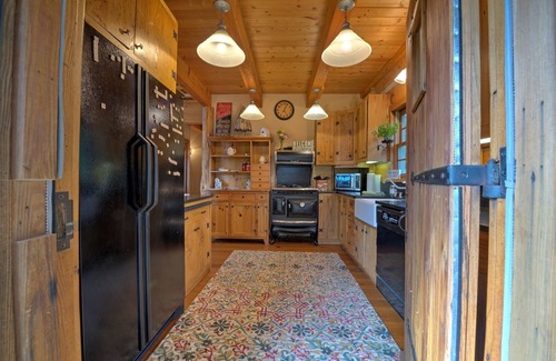 Discover the magic of Starry Night, a rustic haven perched atop the mountains, offering breathtaking views and direct access to on-site hiking trails. Embrace the timeless allure of this classic log cabin, where a gas-converted wood cook stove and a river rock stone fireplace evoke a sense of rustic elegance. The spacious living and dining area provides ample room for family gatherings, and the fully equipped kitchen beckons you to craft delicious home-cooked meals. Unwind in the upper-level main suite, complete with a loft sitting area, a full bath, and a large walk-in closet.