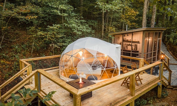As featured on A&E’s Living Smaller (Episode 8), the Tiny Geopod offers a unique and upscale experience for the nature loving adventurer. Have it both ways with a retreat in nature & a 5 minute walk to historic Todd or 20 min drive to Boone & W.Jefferson. Enjoy the Tiny Pod and outdoor spaces with hot tub, fire table, gazebo and comfy outdoor furniture. Cook in the Pod's outdoor kitchen (NOTE: kitchen modified during winter) or grill. Relax & refresh while experiencing the joy of tiny living!
