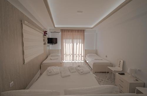 Located in Borsh, a few steps from Borsh Beach, Hotel Angjelo provides accommodations with a garden, free private parking, a terrace and barbecue facilities. Among the facilities at this property are a concierge service and luggage storage space, along with free WiFi throughout the property. The property has a 24-hour front desk, an ATM and currency exchange for guests. At the hotel each room is equipped with air conditioning, a seating area, a flat-screen TV with satellite channels, a kitchen, a dining area, a safety deposit box and a private bathroom with a bidet, free toiletries and a hairdryer. Rooms include an electric tea pot, while some rooms are equipped with a balcony and others also offer city views. Guest rooms will provide guests with a fridge.