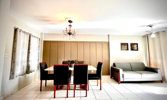 This apartment offers air-conditioned accommodations with a patio and free Wifi. Offering a balcony and city views, the spacious apartment includes 2 bedrooms, a living room, flat-screen TV, an equipped kitchen, and 2 bathrooms with a shower. Towels and bed linen are offered in the apartment. The property has an outdoor dining area. Vitória Airport is 47 miles from the property.