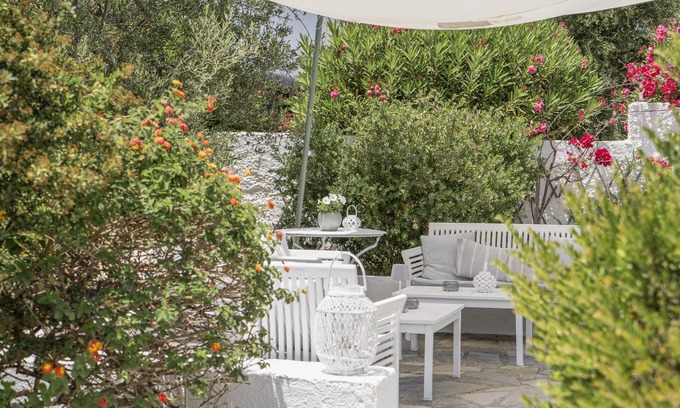Nearby recommendations include the restaurant Glyfada, the old shipwreck, the beaches Trinisa and Mavrovouni (ideal for surfing) and the various beach bars.