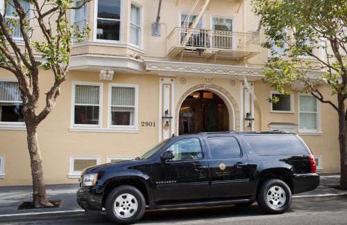 Built in 1903, Hotel Drisco features Edwardian architecture. Atop Pacific Heights on Pacific Avenue, this luxurious San Francisco hotel is only 5 minutes' walk from Presidio National Park. Each guest room provides free WiFi. Guest rooms at this hotel boast modern amenities such as a 42-inch flat-screen HDTV and a Blu-ray player. The private bathrooms feature luxury bath amenities and plush microfiber robes. Egyptian cotton sheets, goose down comforters and an adaptive sound sleep machine are provided. Fresh espresso can be brewed with the in-room coffee machine. Guests can enjoy 24-hour room service. Hotel Drisco features a free gourmet continental breakfast and free evening wine and cheese reception with fresh fruit and hot hors d'oeuvres. Guests will also appreciate free weekday car service to Union Square, the Financial District and Presidio businesses. After a cup of coffee in the sitting room, visitors can enjoy a workout in the on-site fitness center or take advantage of free access to the nearby YMCA. With a 24-hour business center, guests at the Drisco Hotel can always be productive. San Francisco’s vibrant Union Square is 2.8 mi away from Hotel Drisco.