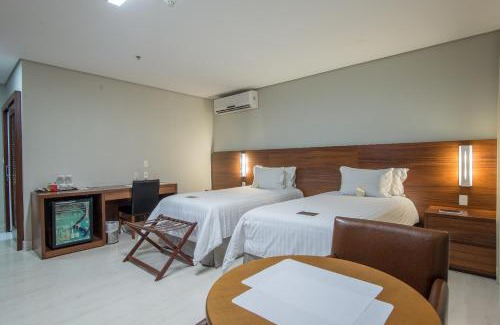 A rooftop pool, restaurant, spa services and modern gym are featured at the luxurious Gran Odara, located in Cuiabá. It is 0.6 mi from Goiabeiras Shopping Mall and just 722 feet from Mãe Bonifácia Park. Wi-Fi is available throughout the property. With fine wooden fittings, rooms are all equipped with air conditioning, an LCD TV with satellite channels, safe and mini-bar. The private bathroom includes a shower and a hairdryer. Room service is available 24 hours a day. Avec Restaurant serves French and regional cuisine, as well as a rich buffet breakfast with fresh fruits, hot and cold items. Fine cocktails can be ordered from the elegant bar. Guests at the 5-star Hotel Gran Odara may also enjoy massages, sauna sessions or beauty treatments. The nearest airport is Marechal Rondon Airport, located 7.6 mi from Gran Odara.