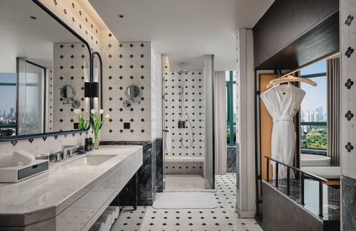 The hotel boasts a range of luxurious amenities designed to cater to your every need. Indulge in exquisite dining options with four distinct restaurants, perfect for hosting wedding receptions or intimate dinners. Guests can unwind in the indoor or outdoor pools, enjoy a workout in the fitness center, or relax on the expansive rooftop terrace with breathtaking views. Each of the 354 well-appointed accommodations features premium bedding, minibars, and modern bathrooms complete with plush bathrobes and complimentary toiletries to ensure a comfortable stay for you and your wedding party.