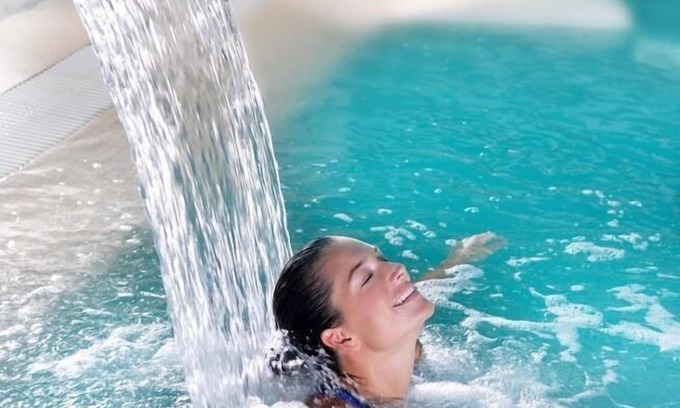An indoor pool, an outdoor pool, and a hot tub are on site.