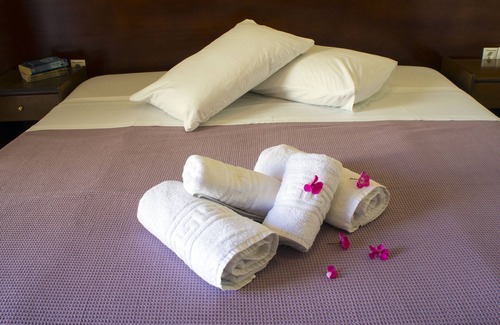 Hotel Loukas Vrachos offers 25 accommodations, which are accessible via exterior corridors and feature laptop-compatible safes and complimentary bottled water. Rooms open to furnished balconies. Beds feature Egyptian cotton sheets and premium bedding. Accommodations at this 3-star hotel have kitchenettes with refrigerators, stovetops, cookware/dishes/utensils, and coffee/tea makers. Bathrooms include showers with rainfall showerheads, complimentary toiletries, and hair dryers.