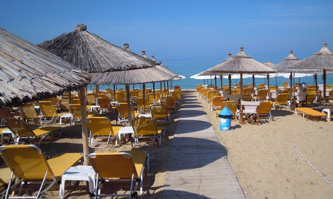 At Hotel Loukas Vrachos, hit the beach where you can enjoy volleyball, then dine onsite at Vanilla Restaurant.