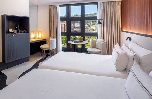 Hotel Melia Bilbao offers 210 accommodations with minibars and laptop-compatible safes. LCD televisions come with satellite channels. Bathrooms include bathrobes, slippers, bidets, and complimentary toiletries.