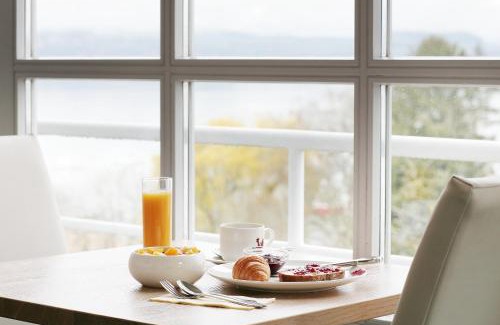 This 3-star Murtenhof & Krone hotel in a Medieval patrician residence in the old town of Murten features a terrace with a wonderful view of Lake Murten. The hotel is only a 5-minute walk from the train station and is located at the entrance to the old town, directly beside the castle. There are 2 electric charging stations in the garage. The Murtenhof features refined cuisine, a big choice of regional wines and individually decorated rooms and suites.