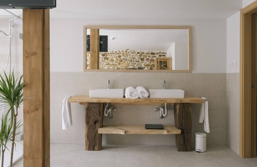 Hotel Nafarrola Gastronomy & Wine offers 8 air-conditioned accommodations with indoor private hot tubs and safes. Each accommodation is individually furnished and decorated. Memory foam beds feature down comforters. 40-inch LED televisions come with digital channels. Bathrooms include separate bathtubs and showers with jetted bathtubs and rainfall showerheads. Bathrooms are also outfitted with bathrobes, slippers, and designer toiletries.