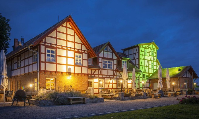 Best-rates for the Hotel Restaurant Mühlenhof Bosse starts from $79 per night with includes Balcony/Terrace, Security/Safety, Bedding/Linens, Wellness Facilities, Guest Services, Entertainment, Child Friendly, TV with all other amenities. Perfect for Weddings is committed to ensuring every guest experiences a comfortable and extraordinary stay, whether planning a romantic getaway, a honeymoon, a pet-friendly stay, or celebrating with the entire wedding party.