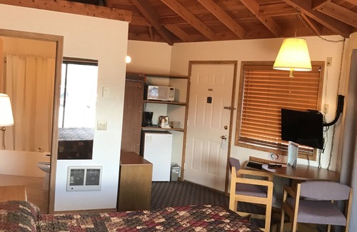 Some rooms allow pets: $25 per pet, per night, max of two allowed. One room with 1 KING bed in an yurt shaped building (half of the yurt) with deck and located right next to a golf course. The room comes with a mini-fridge, microwave and coffee maker.