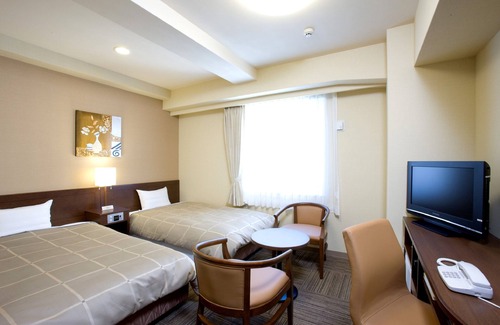 Hotel Route Inn Nobeoka Ekimae offers 198 air-conditioned accommodations with slippers and hair dryers. 32-inch LCD televisions come with digital channels and pay movies. Bathrooms include shower/tub combinations, complimentary toiletries, and toothbrushes and toothpaste.