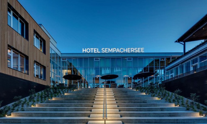 Located on the shores of Lake Sempach, in the heart of Switzerland, Hotel Sempachersee, extensively refurbished in 2017, offers 150 rooms (out of which 74 are barrier-free) and 40 well appointed meeting rooms. The underground car park features 300 parking spaces.The hotel is one of the leading conference hotels in Switzerland" The modern rooms are located in 5 pavilions, a few steps from the main building and the GZI building. The Vivace self-service restaurant features a terrace and offers a wide selection of meals and the Sempia à-la-carte restaurants serves fine dishes in a beautiful setting. There is also a bar in the hotel. A brunch buffet is available every Sunday from 10:00 until 14:00.