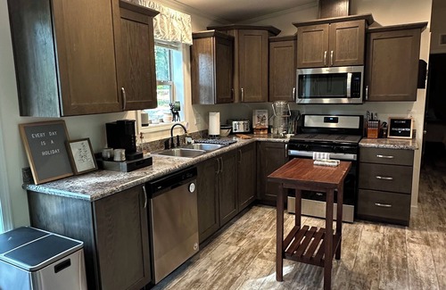 HOTELS R BORING! Minutes to SBU! 2b-2b! Explore acres, bluffs, creek, trails! has 2 Bedrooms , 2 Bathrooms, and max occupancy of 8 people. The minimum rental for this property is 1 nights, but this can change depending on the season you plan on staying. Previous guests have rated it 2, and VRBO labeled it a top-rated House because of the excellent services rendered by the owner or manager of this House, and has consistently provided great experiences for their guests. Most families or guests that use it recommend it to their friends and some of them are repeat guests. House has a friendly neighborhood, and the Eudora has interesting places to visit. If you want to learn more about the House in Eudora, such as places to visit and things to do nearby, you can check below to learn more.