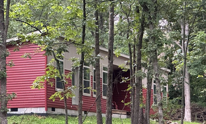 Splurge a little and break the boredom! New luxury 2/2 cabin in Bolivar! Secluded getaway close to town and attractions (scroll down to see list). Our venue makes the perfect family, church small group or corporate retreat.. Features pristine Ozark countryside, well equipped kitchen, relaxing living room, cozy private bedroom with queen bed & ensuite, Bedroom 2 has a bunk bed adjacent second full bathroom washer, dryer, central heat & AC, WiFi, streaming TVs, iron, hair dryers. Extra sleeping with queen AND full sleeper sofas in living room. Our property has 178 acres you can explore! Hike our trails down to beautiful Walnut Creek with its bluffs and seasonal waterfalls. Take in the scenery and enjoy everything Bolivar, the Ozarks and this wonderful cabin has to offer. If you need more space let us know as we have a larger property that offers more!