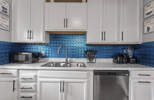 Grown&SEXY is equipped with all-new stainless steel appliances. You’ll only need to bring groceries when you arrive, as the kitchen is fully stocked with pots, pans, glassware, and dinnerware—perfect for any chef to entertain during your stay.