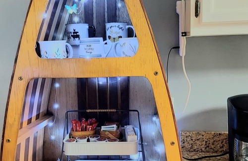 Inside is Huge Master suite has its own bathroom away from others with a shower. The other bathroom has a tub/shower. We even have a step so that little ones can reach the sink. We even have playpen, monitors, first aid kit, fire extinguisher, and many more extras. Each room has fully made quality beds with two pillows for each person. Extra blankets and pillows. 2 Towels, wash clothes, and hand towels provided for each person as well as two pods for wash. Free washer and dryer use. Two small shampoo bottles and two hand creams for each bathroom, as well as two small bars of soap. Toilet paper is provided for length of stay in mind as well as how many people. Some coffee pods are available with sugar as well as some tea or instant coffee to get you started. Beds are so very comfortable, and two rooms have a multi color LED light for fun as well as a blue tooth music box. The kitchen has a pod and a full pot of coffee options. Some of the other items included in the fully stocked kitchen is dishwasher, cutting board, dish clothes, dish dryer, chopper, frier, blender, rice cooker, different size pots many different utensils as well as for grilling and much more.