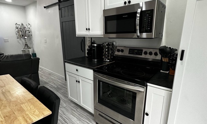 The kitchen is fully stocked and furnished with all new appliances as has everything you need. Washer and dryer are available inside the unit as well. This modern stay is a must see!!