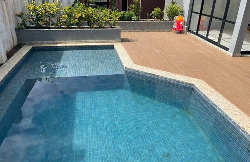 Yes, this Patamares house has a swimming pool. Check the Facility Overview section for details about the pool and other available facilities.