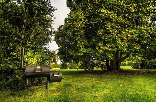 As you settle into this 9-bedroom, 5-bathroom rental, you'll find a living room, a BBQ grill, a fireplace, and a desk. Bathroom amenities include a hair dryer, a bidet, and towels. The kitchen is equipped with an oven, a stovetop, and a refrigerator, as well as a coffee maker, an electric kettle, and a microwave. And you won't have to pack extra clothes, because you'll have a washer and dryer, too.