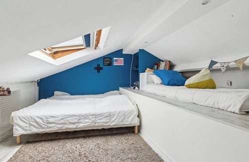 Discover the charms of a completely renovated house, a subtle blend of old and new. You will be charmed by its spacious and particularly welcoming living area with its cathedral-style living room bathed in natural light. The living room is adjacent to the outdoor area equipped with a barbecue for unforgettable evenings. Fully equipped dining kitchen, a basement playroom for fun with foosball. The sleeping area is divided into 2 parts. The first part is the master bedroom overlooking the living room and equipped with a double bed (160cm), a dressing room, and a bathroom (bathtub/shower/toilet). The second part is located on the other side of the house. Upstairs, find a bedroom with a double bed (140cm), a second bedroom designed with a workspace overlooking a pleasant terrace on the first level, and a loft with 2 beds (90cmx2 / can be combined to make a single bed of 180cm) on the second level, an individual shower room. This house offers beautiful amenities and enjoys impeccable light; you will feel at home from the first steps.