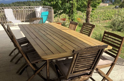 Magnificent views of the southern Ardèche, the rock of Sampzon and Mont Ventoux from the south terrace and the living room, on the vineyards from the main terrace and the living room / kitchen / parental room / bedroom, on the montages of Ardèche and the Tanargue from the North terrace.