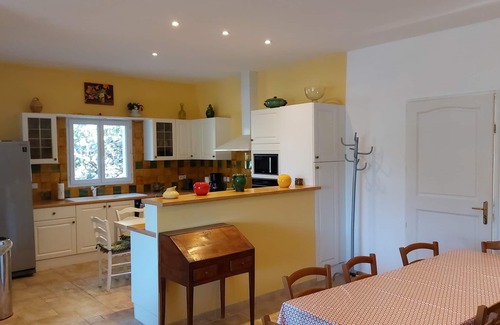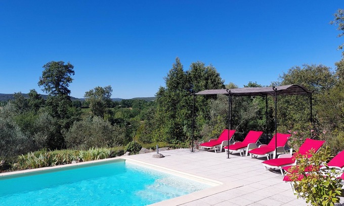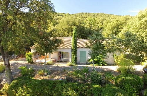 (Text automatically translated) The Magnane is scrubland, in a quiet environment among the oaks and olive trees. Off road, the housed in a separate part of house wall 60 cm, is isolated and fresh, two rooms are air conditioned. HEATED pool from April to November is pleasantly positioned in front of a beautiful view. You have a personal access some weeks owners could also use the agreement. Garden furniture and barbecue meals on the terrace. There are many walks nearby and has many sites and attractions remarquables.Ping-pong balls