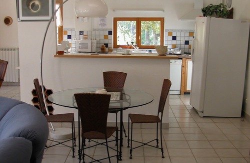 Nice house on one level 120 m2, inside a property, nicely decorated, very comfortable, with two bedrooms: master bedroom with bed 160, other children with 2 separate beds 90, very large living room of about 50 m2 creating several spaces - dining area - relaxation area with large sofa - games table - other relaxation area with a sofa bed with good quality sleeping two people in 140, large fully equipped American kitchen: American fridge, dishwasher, microwave wave, bathroom two basins and large shower, large terrace with garden furniture, fixed stone barbecue. The 10x5 pool with comfortable sunbeds is located about 50m from the house and is shared (it is not right in front).