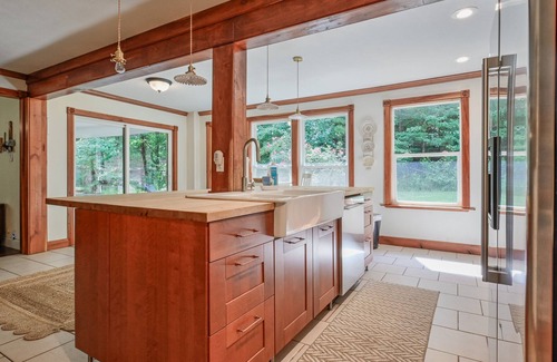 This enchanting lodge features a private living space that comfortably accommodates large groups, making it ideal for wedding parties. It includes a fully equipped kitchen, laundry room, and three beautifully appointed bedrooms, allowing your party to relax and prepare for the festivities together. Guests can enjoy access to unique amenities on the 75-acre property, such as cabins, treehouses, tiny homes, and a Market & Eatery. As you host your celebration, take advantage of various activities like hiking, kayaking, and mountain biking, or simply unwind in your cozy retreat while soaking in the stunning surroundings.