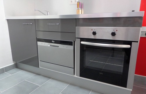 Kitchen: hob, microwave, coffee maker, fridge, dishwasher, oven, toaster, hood