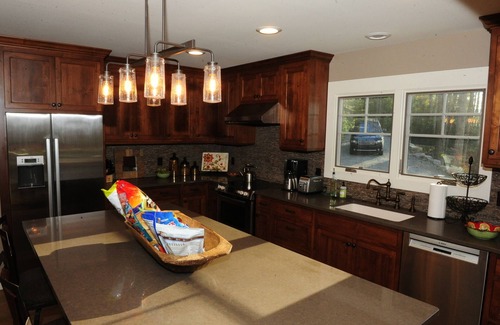 We have set this house up to be very comfortable for family use. The two upstairs bedrooms both have king-sized beds and en-suite bathrooms with Italian tile showers. The main floor bedroom has a queen bed and an Italian tile shower. The basement bedroom is set up as a bunk room with two twin-sized bunks, two trundle beds, and a cast iron tub with a shower. Each room has smart tv and DVD. The kitchen is thoughtfully outfitted and there are gas grills at both the house and the boathouse. The laundry room has a full-sized washer/dryer. The half bath has a copper sink and Rocky Mountain Hardware faucet. All doors are solid hickory with nice hardware. You will love the 'cowboy cauldron fire pit on the boulder patio that overlooks a beautiful setting: horses grazing (the Greystone pastures are adjacent to the house), the campers of Greystone and Mondamin playing in the lake, and both sunrise and sunset views. WE DO NOT OFFER A MOTORBOAT WITH THE HOUSE DUE TO INSURANCE COMPLICATIONS.
