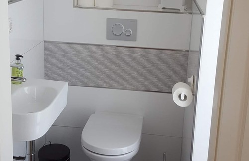 Amenities: all rooms wheelchair accessible, two bedrooms (one with a double bed, the other with a single bed, a double bed pull-out) (well equipped), nice bathroom with large shower and bathtub, small guest bathroom, nice kitchen,