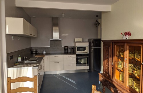 1 big room to be lived with done up and equipped kitchen (oven, microwaves, dishwasher, washing machine ...),
