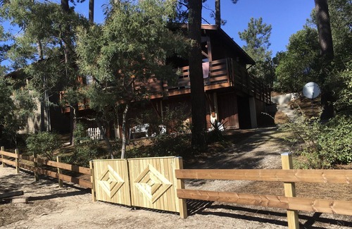 Located in a pine forest between lake and ocean, this chalet in a wooded setting. 2 bedrooms and a loft allow up to 6 people.
