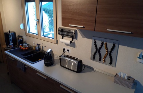 contemporary house, nice view very quiet, very well equipped, comfortable located in Rumilly Haute Savoie between Annecy and Aix bath near the ski resort of Semnoz and 1H from Clusaz and Grand Bornand for the winters and winter summer near the lake of Aix les Bains and Lake Annecy. Terrace with nice view, trampoline, Weber barbecue, chairs, lounge, quality lounge chairs, fully equipped kitchen, multi function oven, microwave, oven, grill, steamer, classic oven, hob, fridge; fridge freezer, dishwasher, washing machine, beer machine, Nespresso coffee machine (pods not included) waffle maker, grill machine, raclette, fondue, KitchenAid robot, central steam, ironing board, vacuum cleaner, flat screen TV, Wifi. 3 bedrooms with double bed, wardrobe, TV, bathroom with 2 basins, bath / shower and toilet, and a second independent toilet.