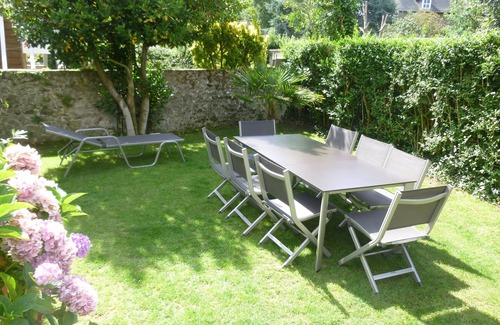 House entirely renovated and ideally located. Near Saint-Enogat historical center, stores and Dinard downtown. Nice and well equiped kitchen with sunny view on garden (south exposure), as well as 3 bedrooms, and a "cabin room", a living room, a bathroom. 2 separate toilets. One private garage. Quiet and cosy garden with BBQ and very comfortable outdoor furniture.