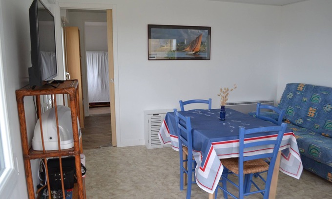 Composed of 2 bedrooms with double bed, a living room with a sofa bed overlooking the sea. A kitchen under veranda. Shower room with shower, separate toilet. Small enclosed courtyard.