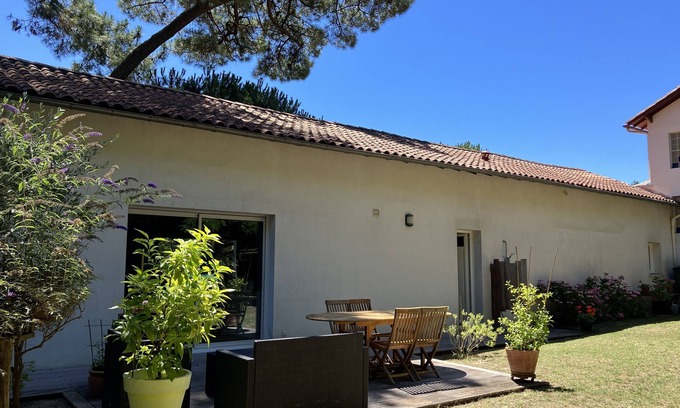 It is located in the heart of peaceful nature in a setting of maritime pines with 1 enclosed garden, 2 terraces, parasol and 1 outdoor shower for returning from the beach.
