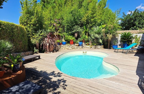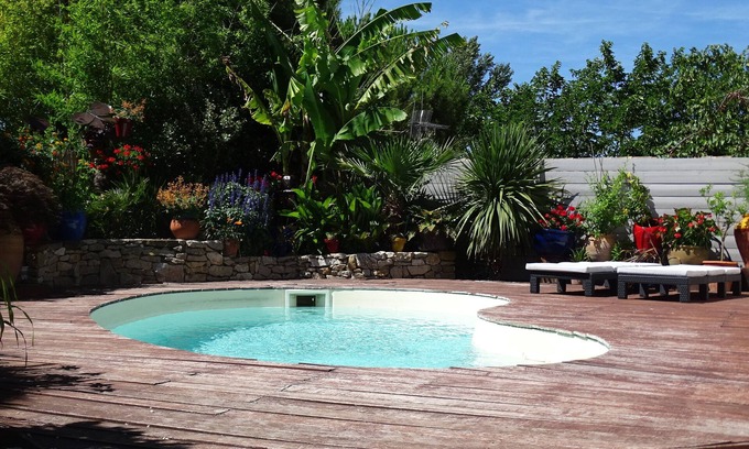 Exterior: wooded and enclosed grounds of 750 m², a totally secure swimming pool (barriers), a terrace with barbecue, plancha.