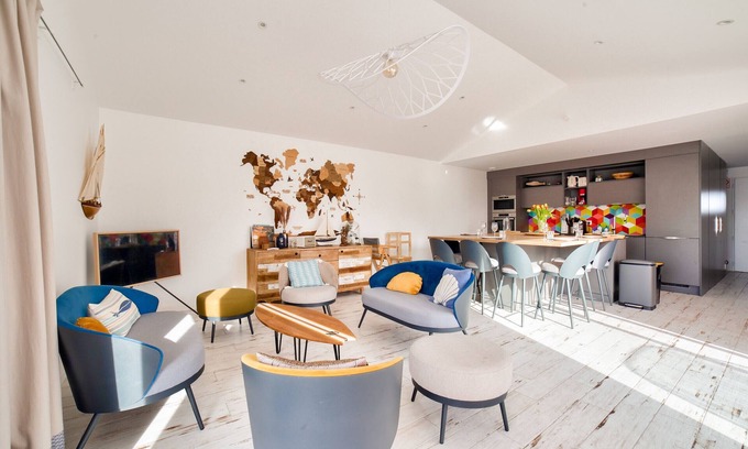 Best-rates for the Noirmoutier-en-l'Ile ski chalet starts from $688 per night with includes Balcony/Terrace, Security/Safety, Child Friendly, Internet, Laundry, View, Oceanfront, Wellness Facilities, Fireplace/Heating, Barbecue/Outdoor Cooking, Kitchen, Ocean View with all other amenities. Perfect for Weddings is committed to ensuring every guest experiences a comfortable and extraordinary stay, whether planning a romantic getaway, a honeymoon, a pet-friendly stay, or celebrating with the entire wedding party.